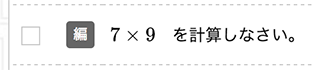問題選択画面では,数式や記号がきれいに出力された状態で 表示されます。数式の入力や数値を変更をするには, 編集ボタンをクリックして,問題編集画面を立ち上げてください。 |